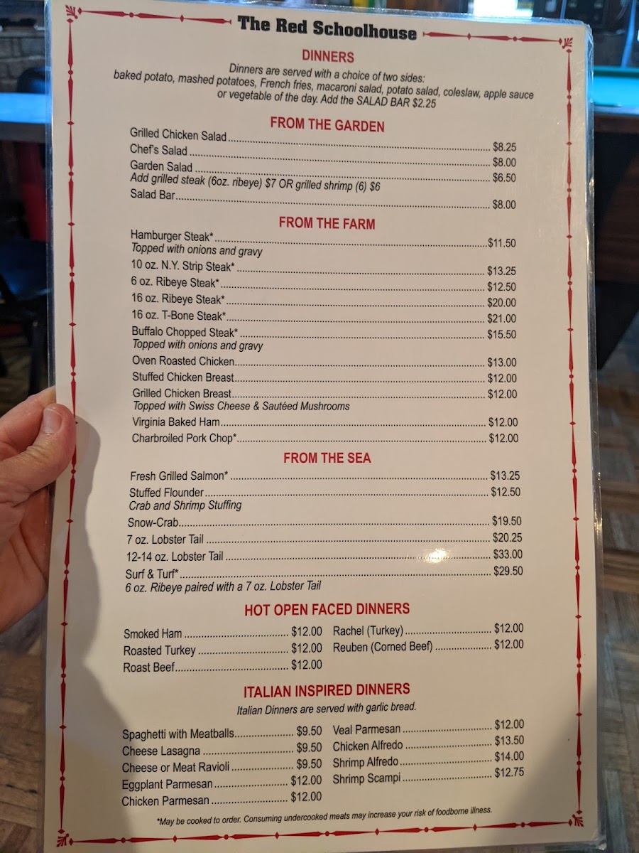 The Red Schoolhouse, nestled in Pleasant Mount, PA, is a delightful eatery that brings the charm of home-cooked meals to life. Located conveniently at 1732 Bethany Turnpike, this beloved local haunt combines exceptional cuisine with warm, welcoming service. Guests rave about the quality of their dishes, from succulent ribeye steaks to crispy wings—a nod to both classic American fare and unexpected seafood options. The friendly atmosphere is enhanced by a vibrant community spirit, making it a perfect pit stop for travelers and locals alike. With reasonable prices and generous portions, The Red Schoolhouse truly captures the essence of comforting dining.
